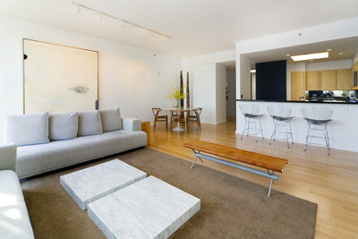 A dramatic and spacious sanctuary located in the heart of the City’s Japantown, this chic top floor corner two bedroom, two bath condominium residence features a sophisticated contemporary design.