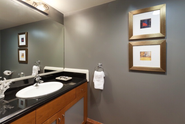 The gourmet kitchen is appointed with cherry cabinetry, stone counters, Viking appliances, and adjacent dining area with balcony overlooking the lower level and capturing beautiful views through an east-facing wall of windows. A half bath and interior access to the garage complete this level. The lower level features a large family/media room with a wall of windows soaring two stories and looking out to the lush, mature plantings of the private, secret garden.