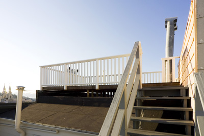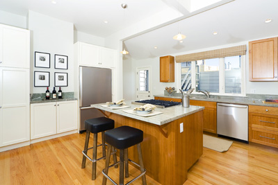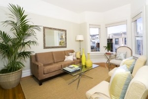 Artist rendering of front facade. The two top floor units will be delivered vacant at close of escrow. Building amenities include, updated façade & windows, updates to electrical and plumbing, hot water heating, hardwood and softwood floors, bay windows, a newer roof, ample storage, two-car garage plus storage, plus a fabulous view from a rooftop deck!