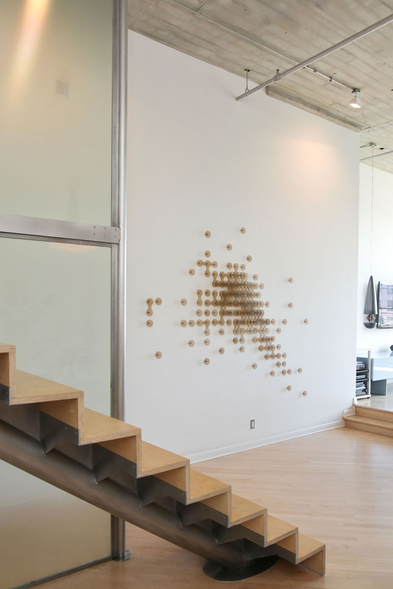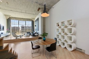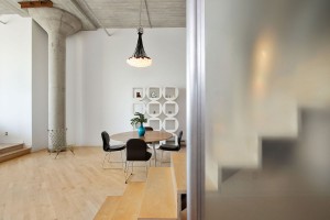 Unit #660T is located in the tower section of the building, and was designed by Jeff Burris of Studio 12 Architecture to create a living space that served collectively as a prism – extending daylight through the long volume of the unit. When passing through the entry hall, each room is nestled up against one portion of a main glazed wall borrowing light from the hallway while exposing the profile of individual spaces.