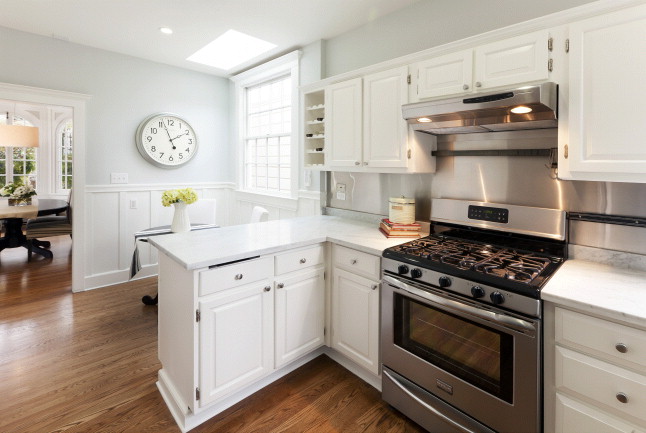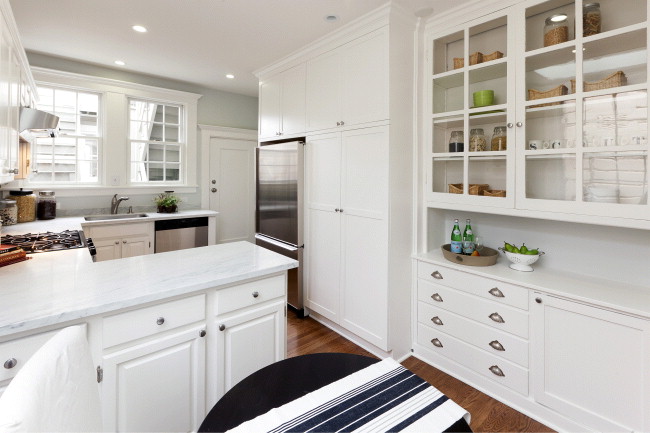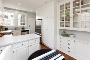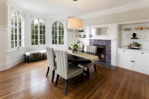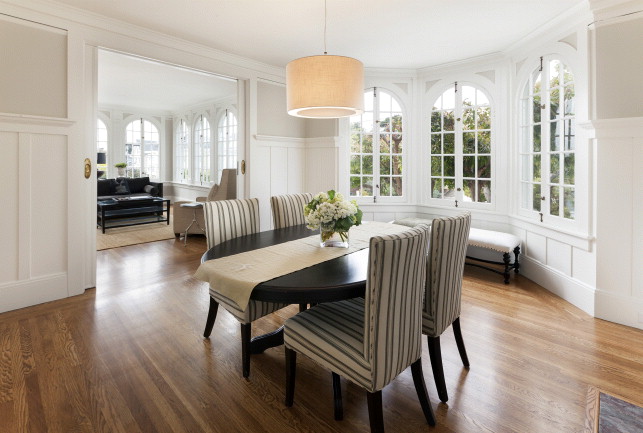 On the main living level, you immediately appreciate the wonderfully open and inviting floor plan. The formal living room features a beautiful fireplace and two walls of gorgeous, period windows. Pocket doors separate the living room from the formal dining room, with high wood paneled wainscoting walls and boxed ceilings, as well as a decorative fireplace and built-in cabinetry.