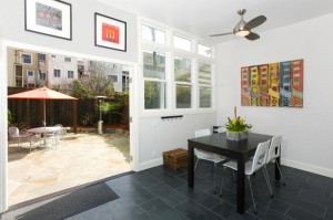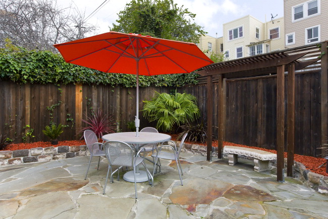Located in the desirable Media Gulch area of the Mission and convenient to trendy restaurants, shops and transportation, this marina style home offers the best of vintage living updated to today’s standards. The entry foyer opens to a large west facing living room with bay window, a corner wood-burning fireplace, hardwood floors and custom lighting. The main living level also features two spacious bedrooms with beautiful softwood floors and ample custom built-out closets. A beautifully remodeled bath with slate floors, skylight and separate shower and soaking tub, and a large remodeled chef’s eat-in kitchen with stainless steel appliances (gas stove, dishwasher, microwave & refrigerator), disposal, washer & dryer, natural quartz stone counters, tiled backsplash, ceiling fans, large skylight, and slate floors complete this level. French doors lead from the dining area to a sunny, beautifully landscaped rear flagstone patio. The lower level has its own private entry from the street and comprises a large bonus room perfect for family room/office/guest suite with adjoining bath and direct access to garden. Other features include custom plantation shutters, many recently installed windows, high ceilings, refinished floors, updated systems, ample storage, a one-car garage plus one off-street parking space.