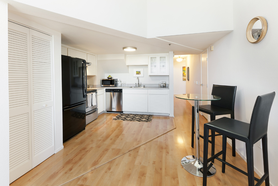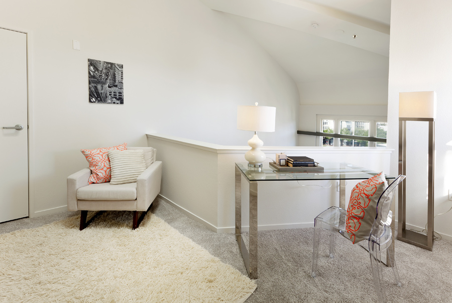 Step into the dramatic living/dining area with vintage north-facing windows and loft ceilings, plus direct access to the sunny loft. A galley kitchen below features updated appliances and flooring, and opens to the living area, perfect for entertaining. Other amenities include washer/dryer in kitchen closet, one-car parking in garage, common shared courtyard, plus easy access to public transportation and all freeways nearby.
