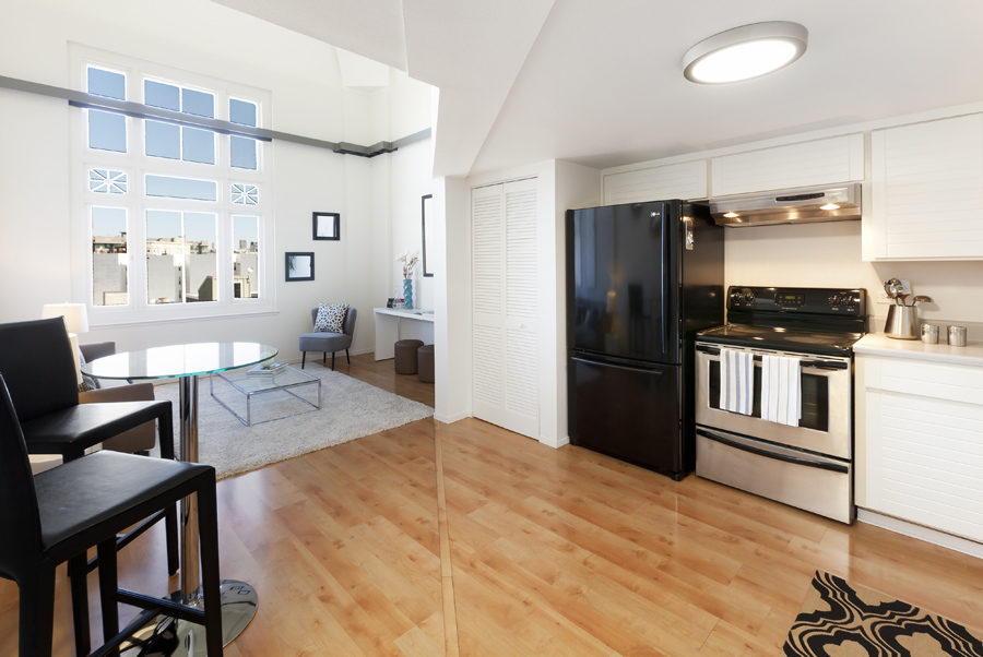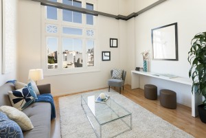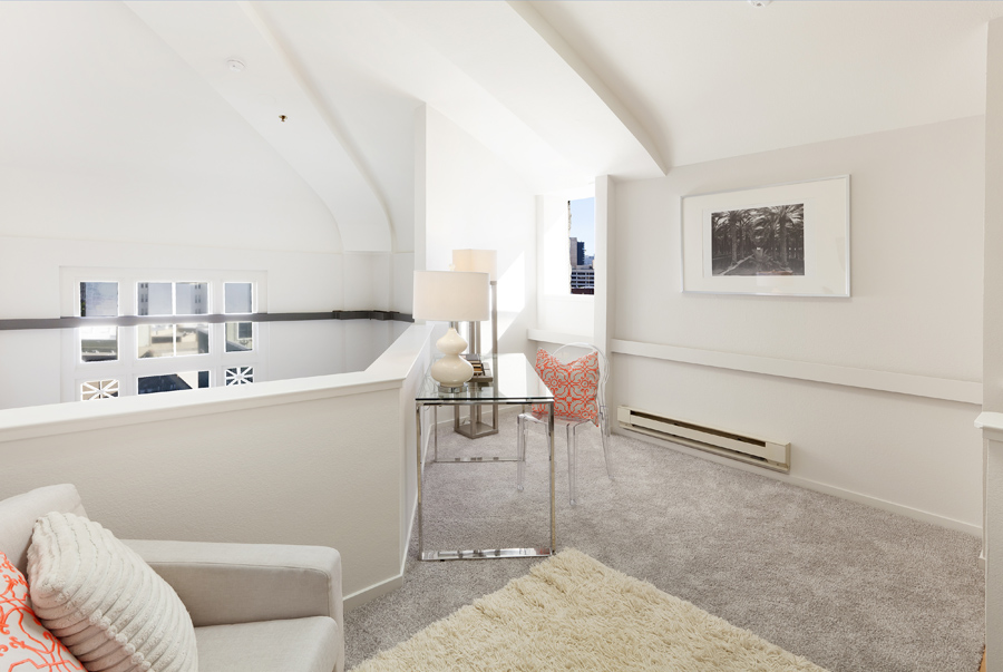 Located in the thriving, artistic Valencia Street corridor, in a uniquely San Francisco historical brick building that was the former headquarters for the Salvation Army, this one bedroom + loft unit opens into an small formal entry foyer, with bath and bedroom off the entry hall.