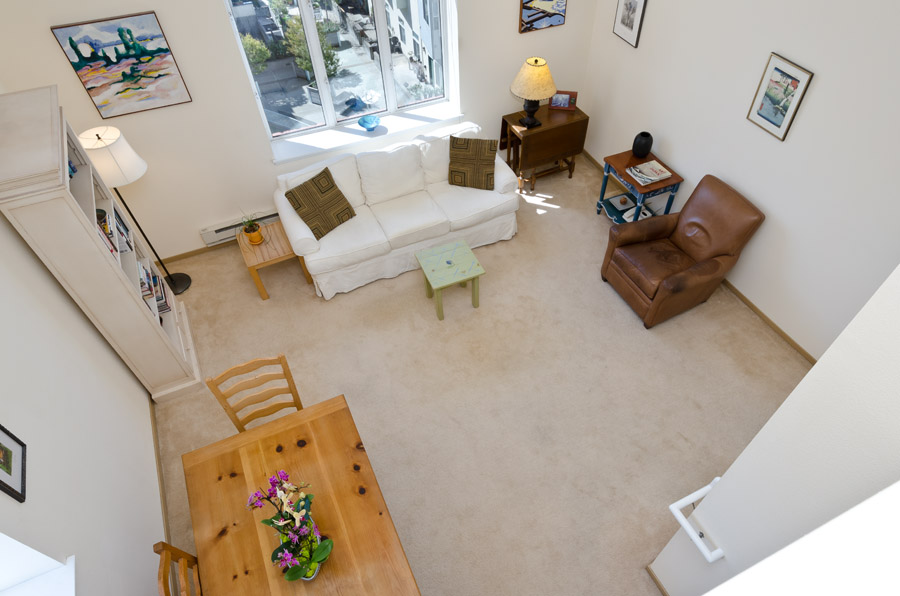 Step into the dramatic living/dining area with tall south-facing windows and loft ceilings, plus direct access to the sunny loft. A galley kitchen below features updated appliances and flooring, and opens to the living area, perfect for entertaining. Other amenities include, washer/dryer hookups in hall closet, one-car parking in garage, common shared courtyard, plus easy access to public transportation and all freeways nearby.