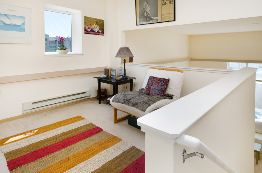 Located in the thriving, artistic Valencia Street corridor, in a uniquely San Francisco historical brick building that was the former headquarters for the Salvation Army, this one bedroom + loft unit opens into an small formal entry foyer, with bath and bedroom off the entry hall.